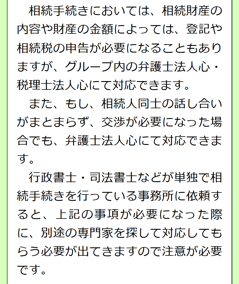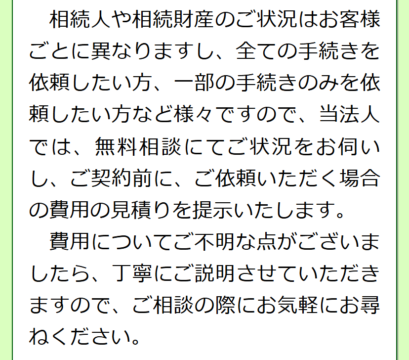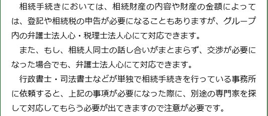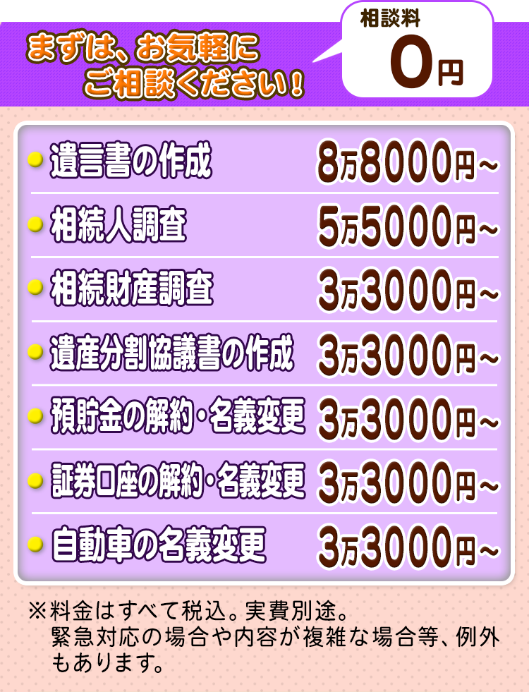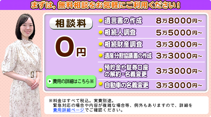 当法人では、お客様に代わって相続手続きを行うご依頼を承っておりますので、お困りの方はお任せください。