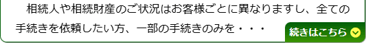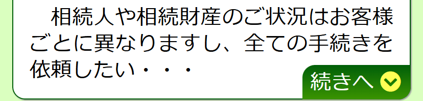特定の手続きのみのご依頼、複数の手続きのご依頼、相続手続き一括でのご依頼など、お客様のニーズに合わせて対応いたします。