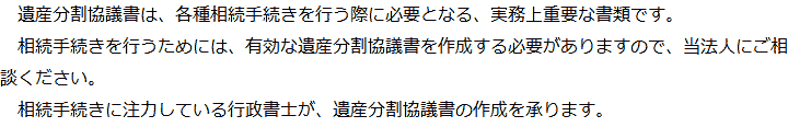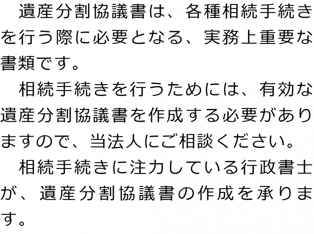 トップ業務内容遺産分割協議書の作成 階層構造▼ 業務内容(目次) 遺産分割協議書の作成 業務内容(目次)業務内容トップ行政書士法人心の業務内容遺言遺産整理相続人調査相続財産調査遺産分割協議書の作成預金・貯金の解約・名義変更証券口座の解約・名義変更自動車の名義変更心グループのその他の業務内容家族信託・民事信託節税対策事業承継遺言の検認相続放棄限定承認遺産分割遺留分侵害額請求相続登記相続税申告相続税調査 受付時間 平日 9時~21時、土日祝 9時~18時 夜間・土日祝の相談も対応します (要予約) 所在地 〒144-0051 東京都大田区西蒲田7-44-7西蒲田T・Oビル5F 0120-2403-39 お問合せ・アクセス・地図