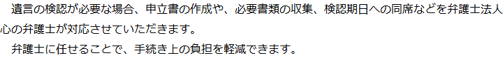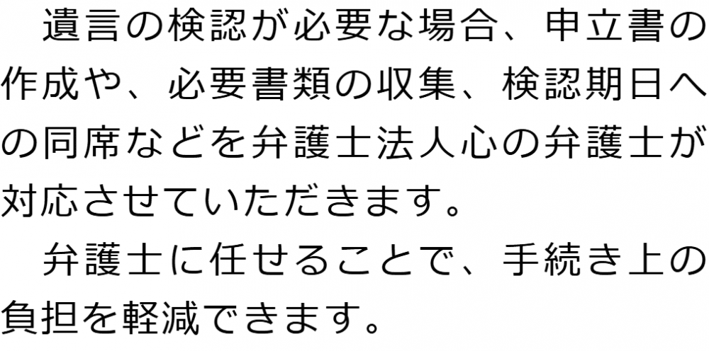 トップ業務内容遺言の検認 階層構造▼ 業務内容(目次) 遺言の検認 業務内容(目次)業務内容トップ行政書士法人心の業務内容遺言遺産整理相続人調査相続財産調査遺産分割協議書の作成預金・貯金の解約・名義変更証券口座の解約・名義変更自動車の名義変更心グループのその他の業務内容家族信託・民事信託節税対策事業承継遺言の検認相続放棄限定承認遺産分割遺留分侵害額請求相続登記相続税申告相続税調査 受付時間 平日 9時~21時、土日祝 9時~18時 夜間・土日祝の相談も対応します (要予約) 所在地 〒144-0051 東京都大田区西蒲田7-44-7西蒲田T・Oビル5F 0120-2403-39 お問合せ・アクセス・地図