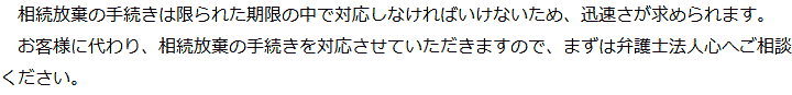 トップ業務内容相続放棄 階層構造▼ 業務内容(目次) 相続放棄 業務内容(目次)業務内容トップ行政書士法人心の業務内容遺言遺産整理相続人調査相続財産調査遺産分割協議書の作成預金・貯金の解約・名義変更証券口座の解約・名義変更自動車の名義変更心グループのその他の業務内容家族信託・民事信託節税対策事業承継遺言の検認相続放棄限定承認遺産分割遺留分侵害額請求相続登記相続税申告相続税調査 受付時間 平日 9時~21時、土日祝 9時~18時 夜間・土日祝の相談も対応します (要予約) 所在地 〒144-0051 東京都大田区西蒲田7-44-7西蒲田T・Oビル5F 0120-2403-39 お問合せ・アクセス・地図