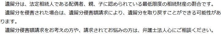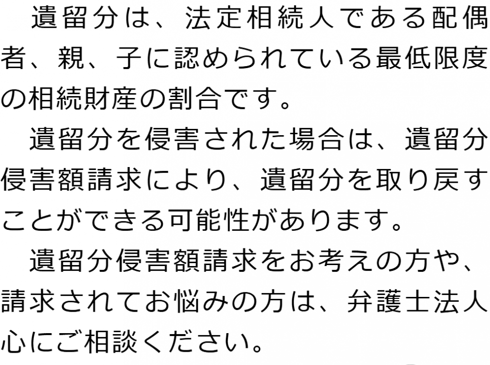トップ業務内容遺留分侵害額請求 階層構造▼ 業務内容(目次) 遺留分侵害額請求 業務内容(目次)業務内容トップ行政書士法人心の業務内容遺言遺産整理相続人調査相続財産調査遺産分割協議書の作成預金・貯金の解約・名義変更証券口座の解約・名義変更自動車の名義変更心グループのその他の業務内容家族信託・民事信託節税対策事業承継遺言の検認相続放棄限定承認遺産分割遺留分侵害額請求相続登記相続税申告相続税調査 受付時間 平日 9時~21時、土日祝 9時~18時 夜間・土日祝の相談も対応します (要予約) 所在地 〒144-0051 東京都大田区西蒲田7-44-7西蒲田T・Oビル5F 0120-2403-39 お問合せ・アクセス・地図